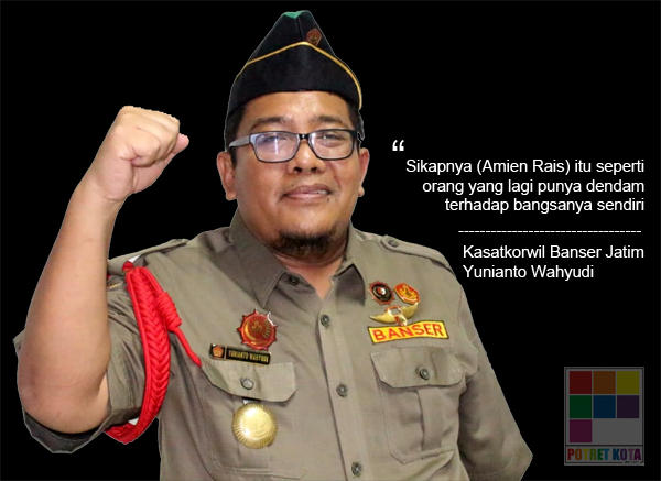 Potretkota.com - Kepala Satuan Wilayah (Kasatkorwil) Barisan Ansor Serbaguna (Banser) Jawa Timur, Yunianto Wahyudi menanggapi enteng manuver Amien Rais yang akhir-akhir ini menambah panas kontestasi politik. Menurutnya, seruan Ketua Dewan Kehormatan Partai Amanat Nasioanl (PAN) tentang pengerahan people power bila pemilu curang tersebut hanya menakut-nakuti saja.