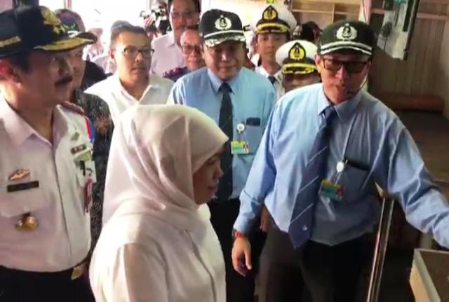 Potretkota.com - Pertama kalinya, Gubernur Jatim Khofifah Indar Parawansa melepas keberangkatan kapal mudik gratis tujuan Pulau Masalembu Sumenep, Rabu (29/5/2019) sore. Tak hanya mengantarkan penumpang, perempuan Kelahiran Surabaya 1965 ini juga menyempatkan meninjau langsung fasilitas kapal, mulai dari tempat duduk, tempat tidur hingga fasilitas kesehatan, dengan harapan semua fasilitas tersedia lengkap.