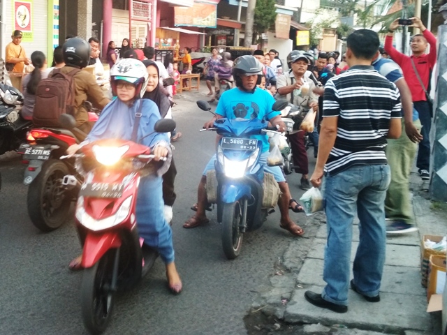 Potretkota.com - Kepala Pusat Koperasi Angkatan Laut (Puskopal) Komando Armada II Kolonel Laut (S) Subagyo, S. E melalui Koordinator Lapangan Kapten Mar. Kemiran dan Ketua Blasdu (Sebelas Dua) wilayah Timur TNI AL Letting XI/2 (1992/1993) Geger Wijanarko, terlihat membagikan takjil kepada pengguna jalan Joyoboyo, Medaeng Sidoarjo, Kamis (30/5/2019) sore.