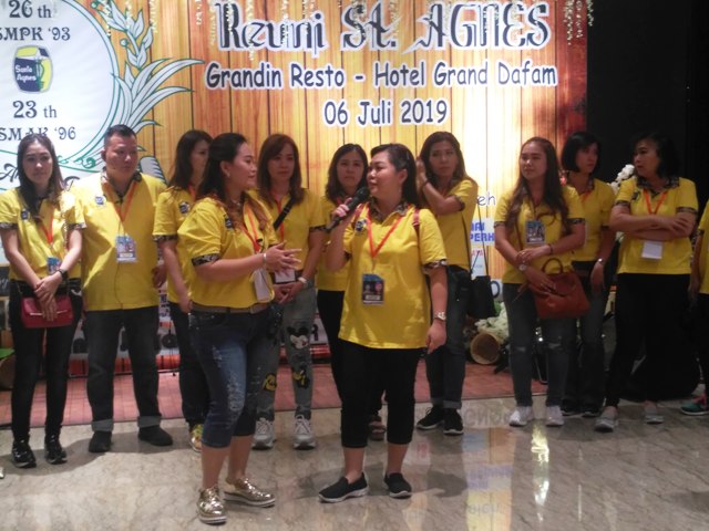 Potretkota.com - Tak sia-sia, sejak September 2018, akhirnya panitia acara 'Eling Aku Ta Rek' bisa mengumpulkan alumni SMPK 1993 dan SMUK 1996 Santa Agnes Surabaya, di salah satu hotel kawasan pusat Surabaya, Sabtu (6/7/2019).