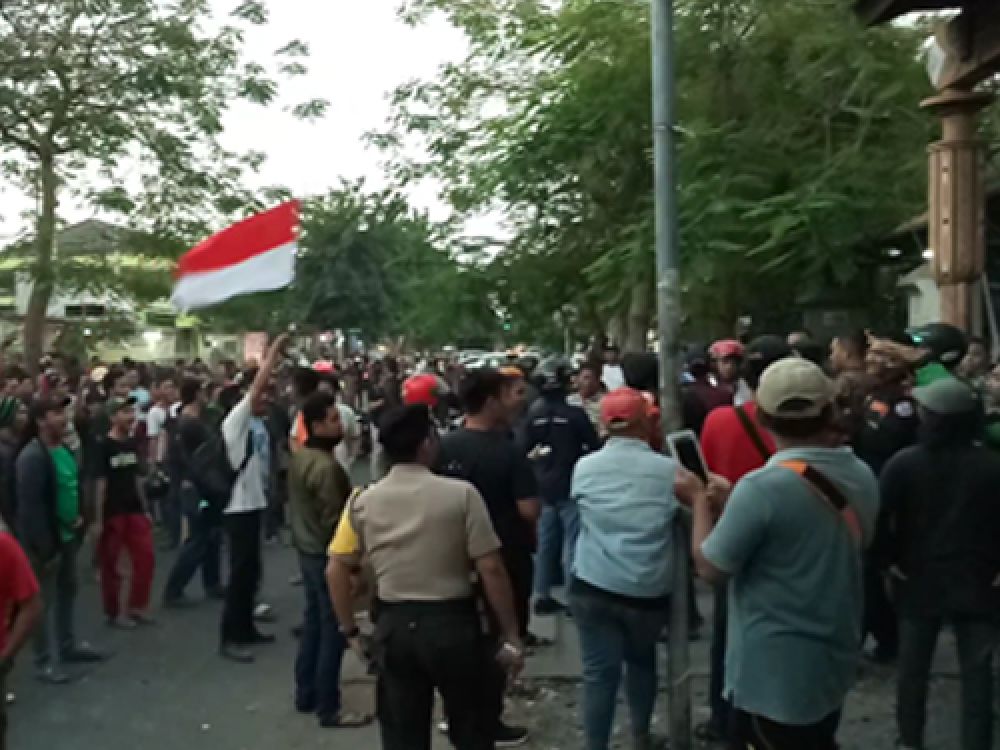 Potretkota.com - Asrama Mahasiswa Papua, di kawasan Jalan Kalasan Surabaya, digeruduk arek Suroboyo, Jumat (16/8/2019). Arek-arek datang karena hatinya terenyuh melihat bendera merah putih yang harusnya berkibar, harus patah masuk selokan.