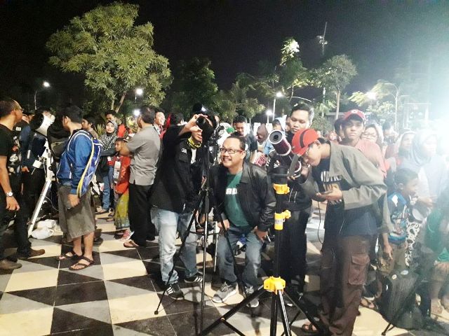 Masyarakat yang ada dipinggiran kota Surabaya, dapat melihat supermoon melalui teropong Celestron, secara bergantian, milik komunitas Surabaya Astrologi Club (SAC). (SA)