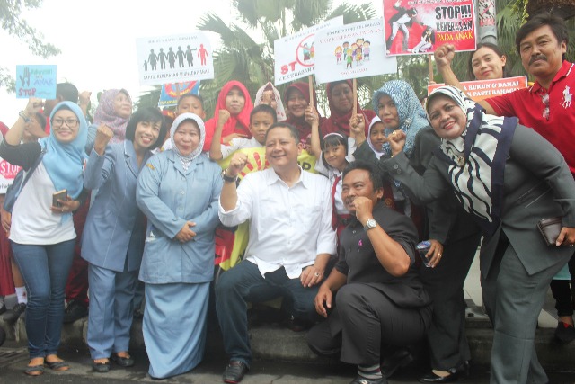 “Kampaye Peduli Anak ini harus kita gelorakan, agar tidak ada lagi kekerasan terhadap anak,” kata Whisnu didepan Balai Kota Surabaya, jalan Wali Kota Mustajad Surabaya, Senin (0/2/2018).
