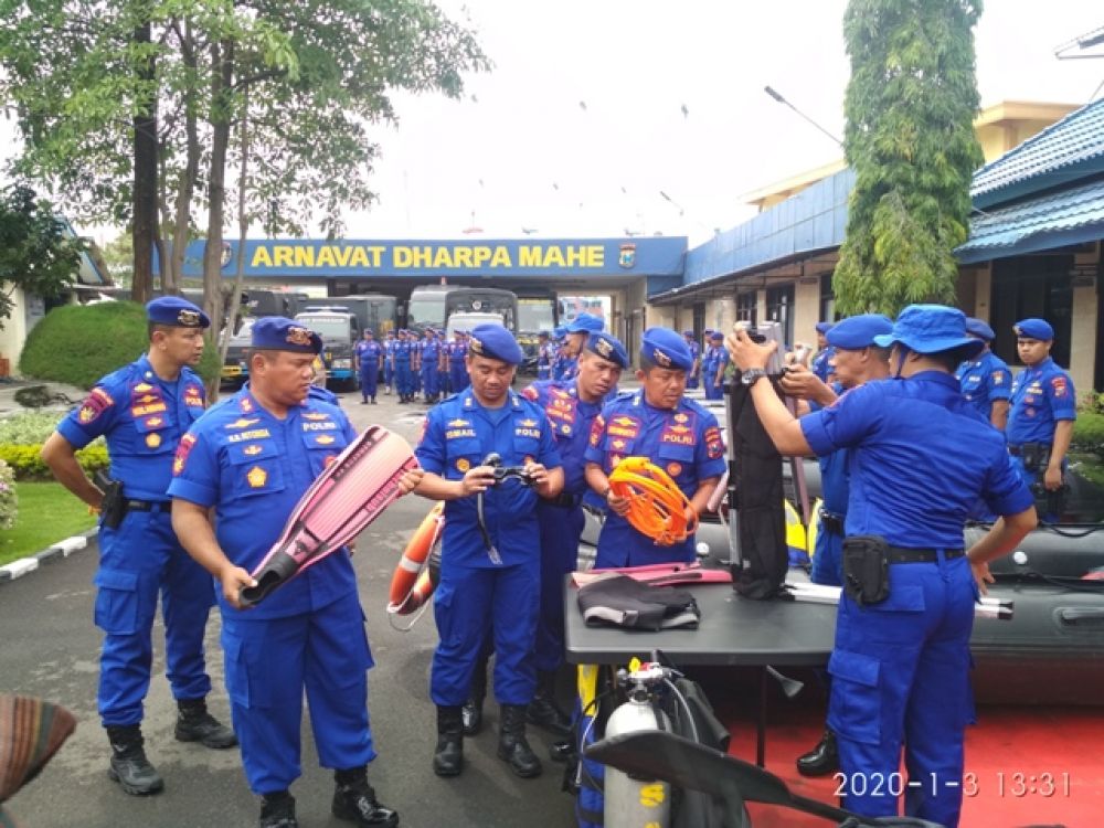 Potretkota.com - Apel siaga banjir dilakukan oleh Direktorat Kepolisian Air dan Udara (Ditpolairud) Polda Jawa Timur guna menyiagakan pasukan apabila terjadi bencana banjir, khususnya kota Surabaya.