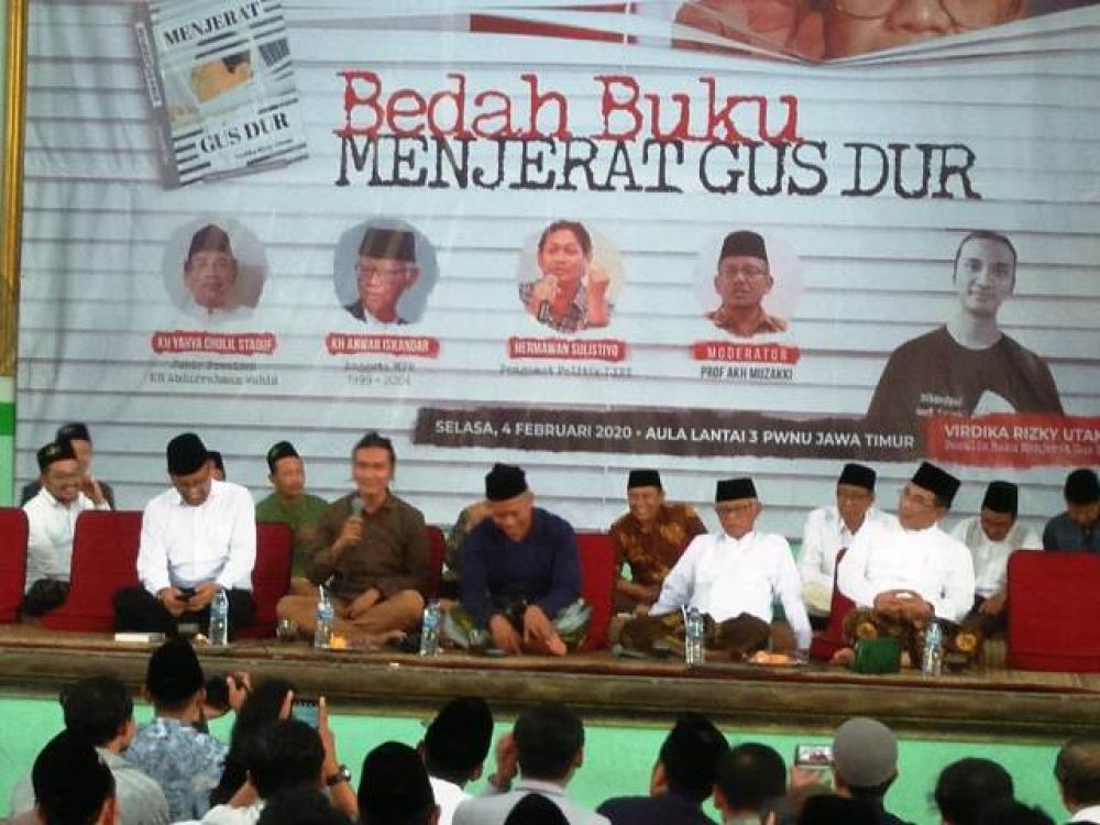 Potretkota.com - Pengurus Wilayah Nahdlatul Ulama (PWNU) Jawa Timur, mengadakan acara beda buku ‘Menjerat Gus Dur’. Buku karya kreatif Virdika Rizky Utama, yang saat ini menyita perhatian banyak kalangan karena membicarakan sutradara atau orang-orang yang berada di balik pelengseran Presiden keempat Republik Indonesia.