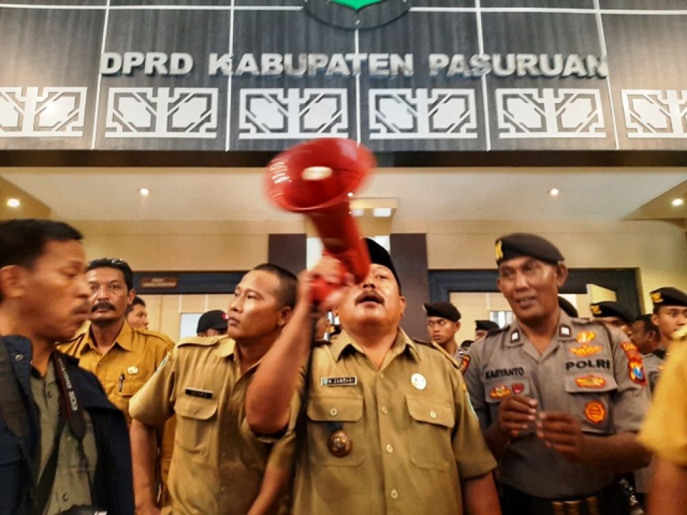 Atas ucapan itu, Kades se Kabupaten Pasuruan merasa tersinggung dan marah. Yang akhirnya jadi ricuh di dalam kantor dewan lantai dua dengan mendobrak pintu kantor paripurna hingga rusak atau jebol.