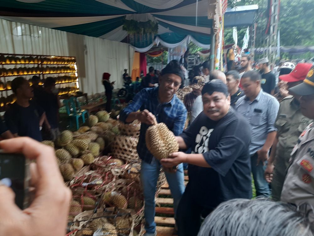 Potretkota.com - Festifal akbar pesta durian nusantara telah digelar di lapangan Kelurahan Prigen, Kabupaten Pasuruan, Jumat (13/3/2020) siang. Acara tersebut dihadiri anggota DPRD Kabupaten Pasuruan, Muspika setempat, tokoh masyarakat, Karang Taruna, pengusaha dan pengunjung lainya. Tujuan acara ini yakni, mempromosikan potensi wisata kuliner yang ada di Kecamatan prigen soal durian Nusantara.