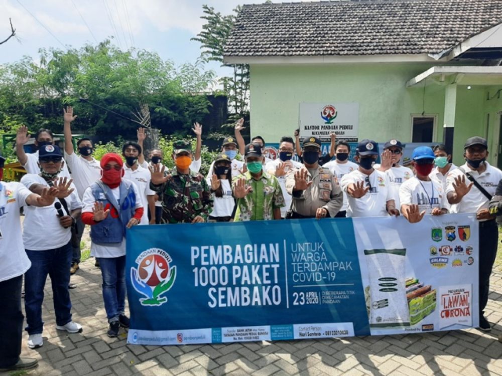 Ketua Pandaan Peduli, Kastari mengatakan bhakti sosial bagi-bagi paket sembako ini adalah gabungan dari beberapa element masyarakat dari kalangan pengusaha dan sebagainya yang mau berdonasi untuk masyrakat terdampak Covid-19. "Bertepatan akan menjelang di hari Ramadhan ini, kami memberikan bantuan paket sembako untuk masyrakat yang tidak mampu secara ekonomi. Dan yang paling khusus sembako kami berikan ke masyrakat yang terdampak Covid-19," ungkapnya.