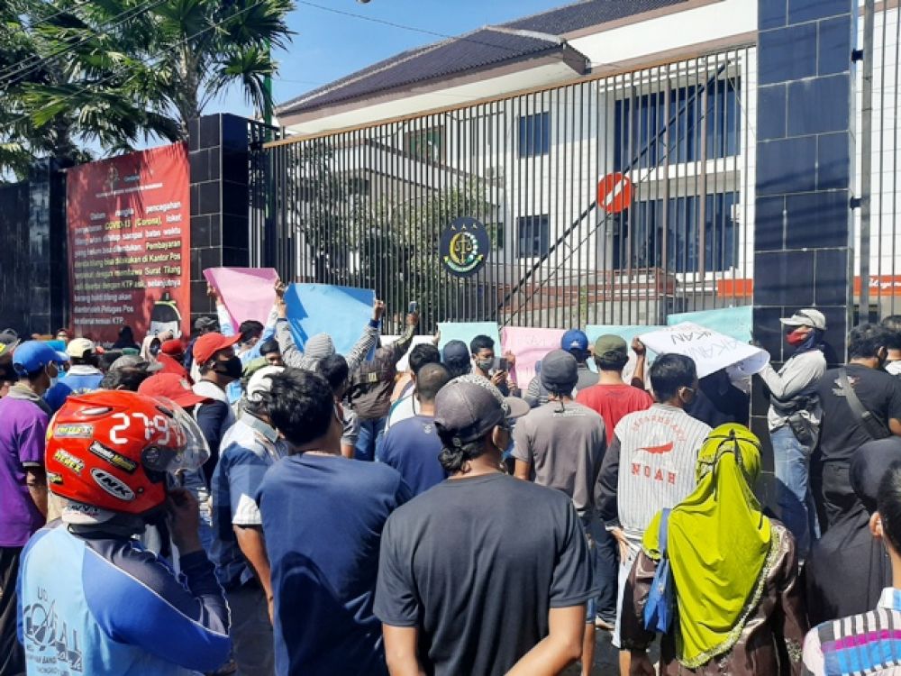 Potretkota.com - Untuk yang kedua kalinya ratusan warga Desa Bulusari, Kecamatan Gempol melakukan aksi demo di depan Kantor Kejaksaan Negeri Bangil, Kabupaten Pasuruan, Selasa (16/6/2020)