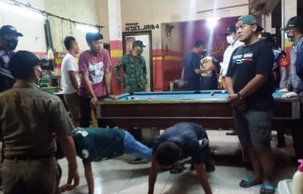 Selama razia berlangsung, petugas memergoki beberapa pengunjung warung kopi yang kedapatan tak menggunakan masker. Tak tanggung-tanggung, pemuda itupun langsung diberikan sanksi berupa push up.