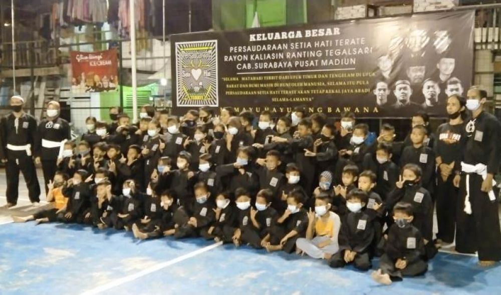 Potretkota.com - Pecak Silat Setia Hati (PSHT) Cabang Kaliasin Kedungdoro Surabaya punya cara jitu guna meningkatkan imunitas tubuh dengan rutin melakukan latihan. Yakni dengan cara latihan fisik.