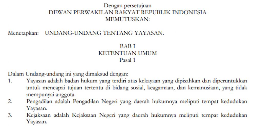 Capture: Undang-undang Nomor 16 Tahun 2001 tentang Yayasan