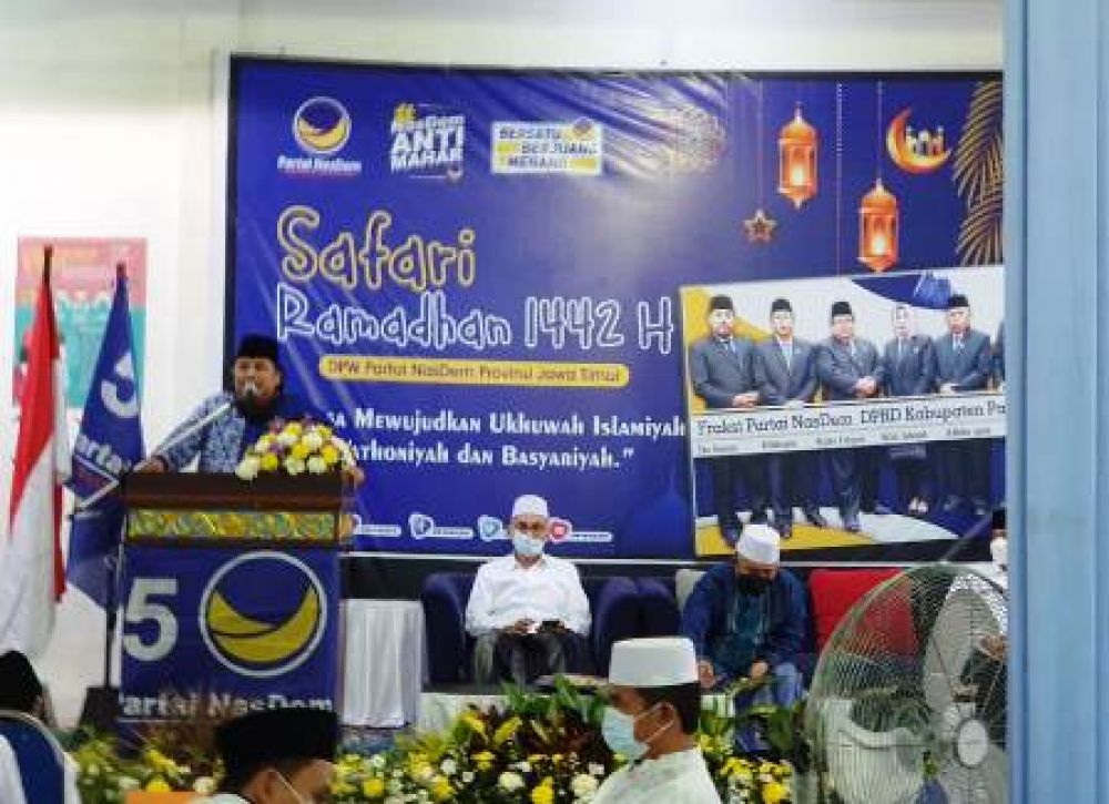 Sementara, Wakil Ketua Dewan Pengurus Wilayah (DPW) Partai Nasdem Provinsi Jatim, Muzammil Syafi'i, yang juga Anggota Komisi A DPRD Provinsi Jatim mengungkapkan, program ini menjadi salah satu upaya mengangkat Partai Nasdem sebagai Partai Nasionalis dan Relegius. "Oleh karenanya partai Nasdem menyelenggarakan Safari Ramadhan. Untuk itulah terima kasih atas tempatnya kepada pengasuh Pondok Pesantren Roudlotun Nursalim Podokaton, KH. Haliem Djasim," tuturnya. (Mat)