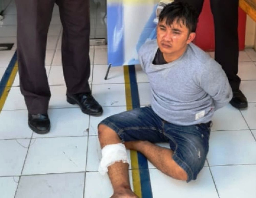 UF dilumpuhkan kaki kanannya dengan timah panas lantaran mencoba untuk memberontak dan hendak melarikan diri.