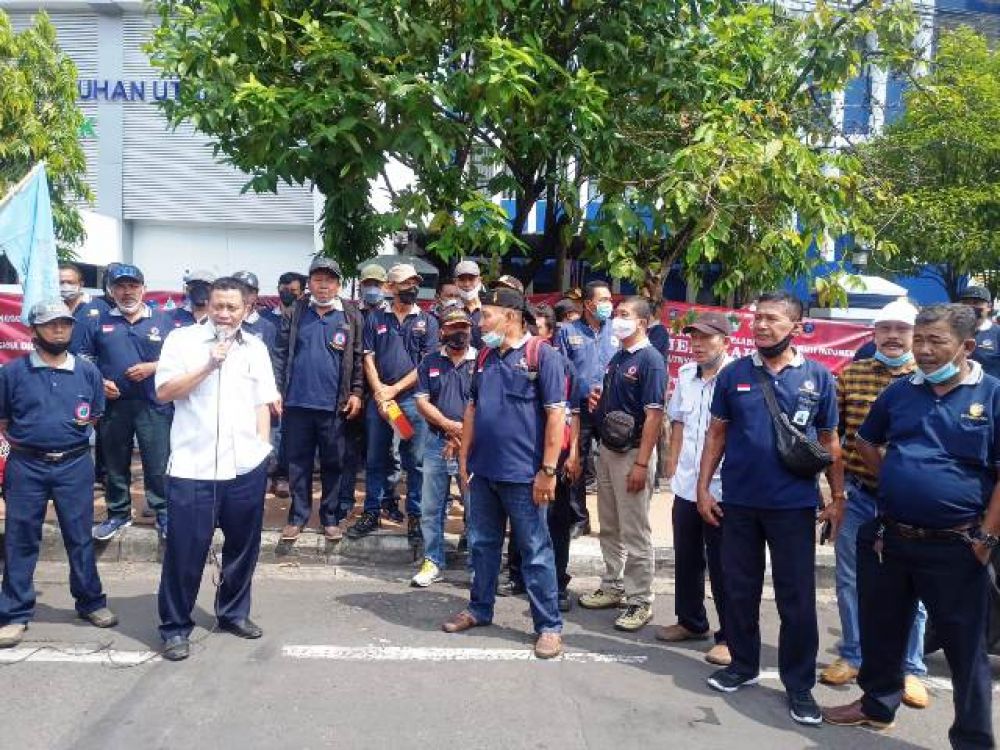 Potretkota.com - Ratusan buruh Tenaga Kerja Bongkar Muat (TKBM) geruduk Kantor Otoritas Pelabuhan Tanjung Perak Surabaya. Buruh menolak dicabutnya Surat Keputusan Bersama (SKB) 2 Dirjen 1 Deputi tahun 2011 tentang Pembinaan dan Penataan Koperasi TKBM di Pelabuhan.