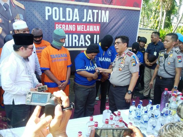 Hal itu disampaikan Kapolda Jatim Irjen Pol. Drs. Machfud Arifin, S.H dihadapan undangan dan wartawan. “Tidak hanya pemabuk, para produsen, penjual miras ilegal diseluruh Jawa Timur harus ditangkap,” tegasnya, Jumat (27/4/2018).