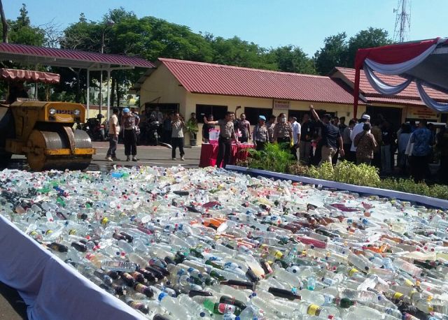 “Kami sudah berkoordinasi dengan pihak kejaksaan agar tuntutan yang diajukan saat sidang kasus miras diperberat, terutama produsen dan penjualnya,” jelas Kapolda Jatim dalam acara pemusnahan barang bukti jenis minuman keras (miras) oplosan dan miras berbagai merk Ilegal di halaman parkir Ditreskrimum Polda Jatim.
