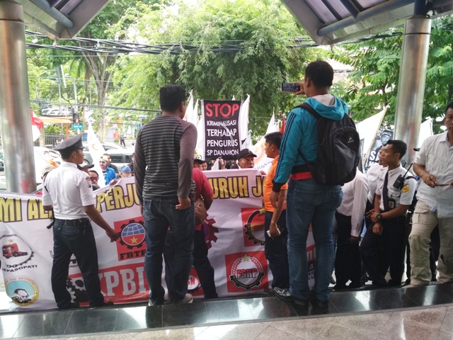 "Pihak Bank Danamon congkak tak mau menemui," teriak salah satu pendemo.