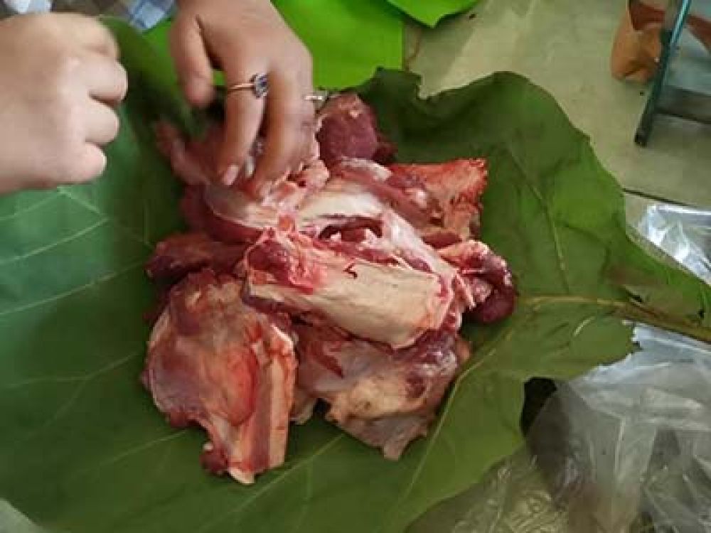 Bambang menegaskan, penggunan daun pohon jati untuk mengemas potongan daging qurban merupakan salah satu wujud dukungan para pedagang bunga Kayoon kepada program pemerintah yang gencar mengkampanyekan pengurangan penggunaan bahan plastik. Sementara itu, untuk tiap-tiap bingkisan qurban dibagi sebanyak 1 kilogram per bungkusnya.