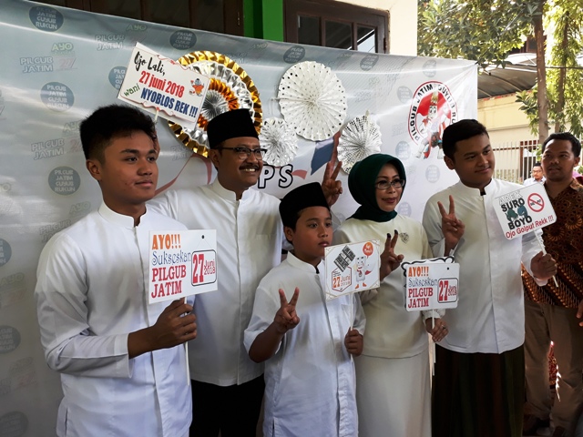 Potretkota.com - Calon Gubernur Jawa Timur, Saifullah Yusuf alias Gus Ipul bersama keluarga melaksanakan pencoblosan di Tempat Pemungutan Suara (TPS) 3 Kel Gayungan, Kec Gayungan Surabaya.
