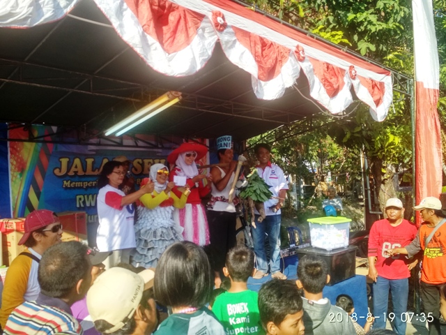Potretkota.com - Dalam rangka memperingati Hari Kemerdekaan Indonesia ke 73, warga Kali Kepiting RW 05, Kelurahan Pacar Keling Surabaya mengadakan acara jalan sehat. Peserta yang menggunakan kustum terunik, diberikan hadiah khusus dari panitia.