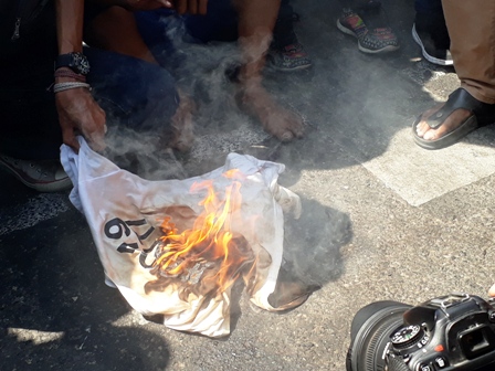 Akibat pelarangan, terjadi adu mulut disekitar Tugu Pahlawan Surabaya, hingga salah satu anggota Polsek Bubutan Bripda Agis Dwi Andriana terkena cakaran ibu-ibu peserta aksi #2019gantipresiden.