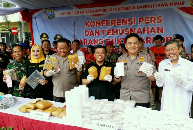 "Pada hari ini dilaksanakan pemusnahan BB Narkoba hasil operasi rutin Polda Jatim dan jajaran bernilai 28 miliar 66 juta 328 ribu rupiah," ujar Kapolda Jatim, Irjen Pol Luki Hermawan, Rabu (19/9/2018) di halaman Kantor PJR Polda Jatim.