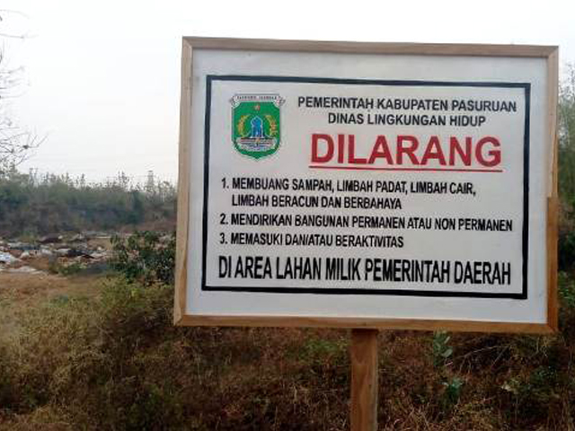 Potretkota.com - Meski tertulis tegas larangan membuang sampah atau limbah di Dusun Jurang Pelen, Desa Jeruk Purut, Kecamatan Gempol, Kabupaten Pasuruan, beberapa warga dan perusahaan tetap ngawur melakukan pencemaran lingkungan, Rabu (10/10/2018).