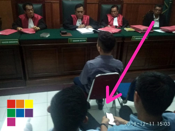Saat saksi Handy dan Jimmy memberikan keterangan dihadapan hakim, Giri Bayu Kusuma mantan Ketua Himpunan Pengusha Muda Indonesia (HIPMI) Jatim yang menjadi tahanan kota Kejaksaan Negeri (Kejari) Surabaya, terlihat bermain handphone.