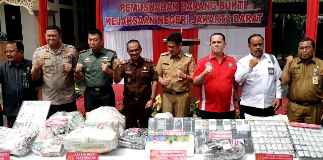 Acara pemusnahan barang bukti tersebut dihadiri Wakil Wali Kota Jakarta Barat M Zen, Kapolres Metro Jakarta Barat Hengki Hariyadi, Dandim Jakarta Barat Letkol (kav) Andre Masengi, Lembaga Swadaya Masyarakat dan Tokoh Masyarakat Jakarta Barat. (Ip)